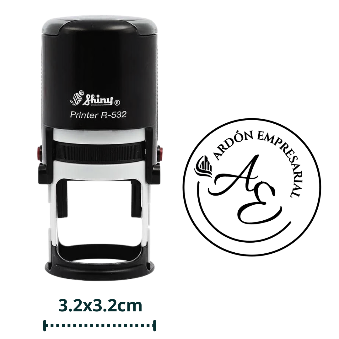 Sello automático con área de impresión circular de 4.2cm, ideal para logotipos, íconos o textos grandes uso profesional o para colegiados en redondo grande.