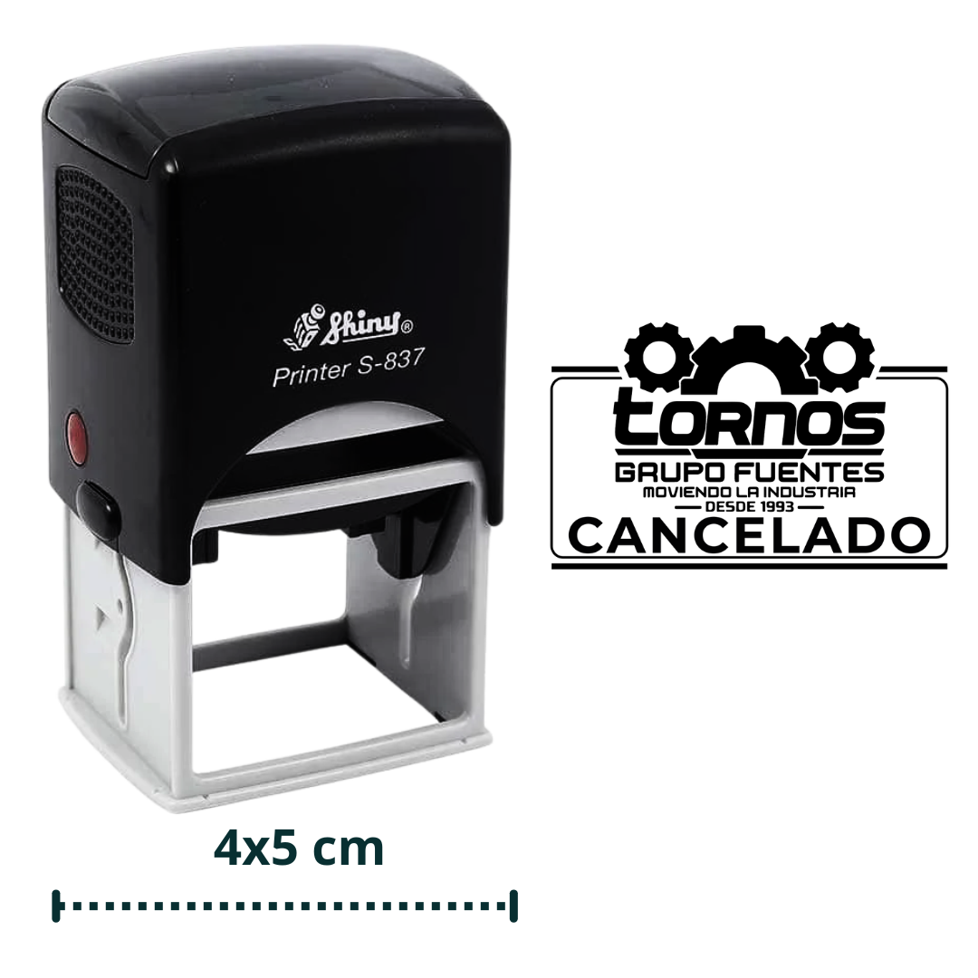 Sello estándar con área de impresión semi-rectangular 3.3×5.8cm, ideal para diseño de endoso 6 línea de texto.